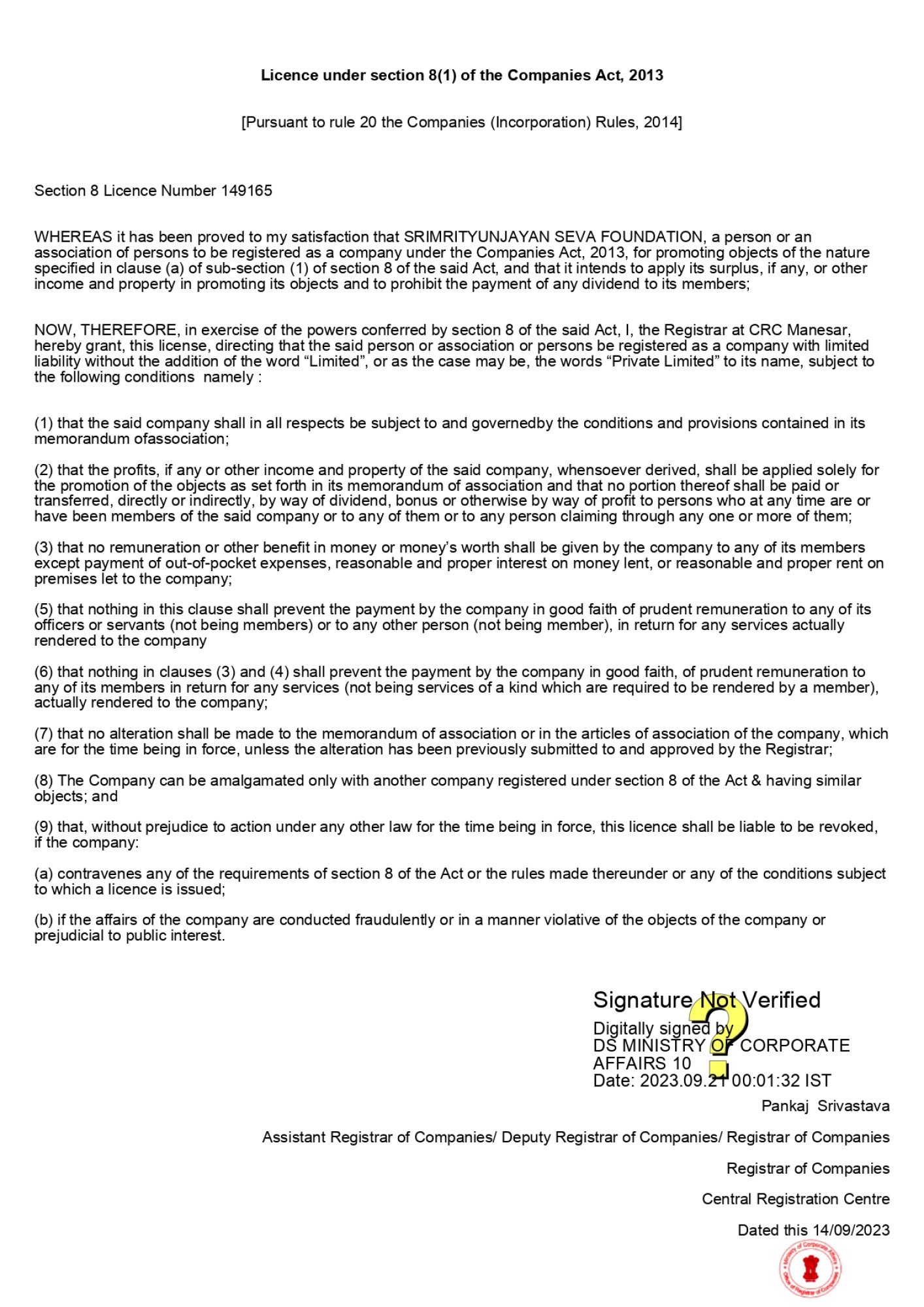 NGO Darpan Registration KA/2023/0359846